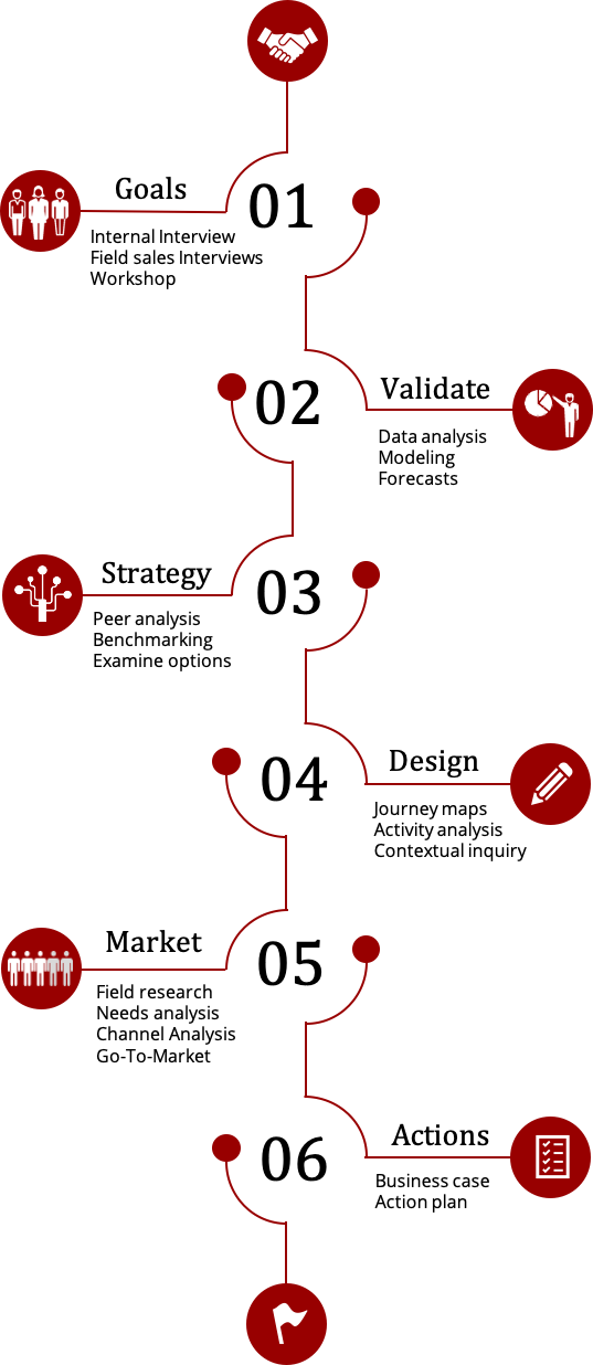 Initially our team analyzed existing business case, conducted customer and competitive research to augment and extend internal findings. Beyond this initial work to frame the client’s target growth opportunity, these additional work streams were conducted: